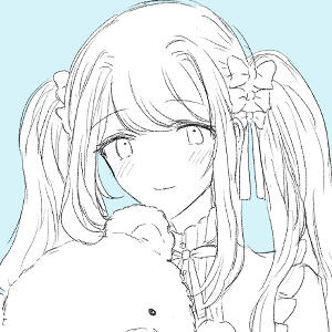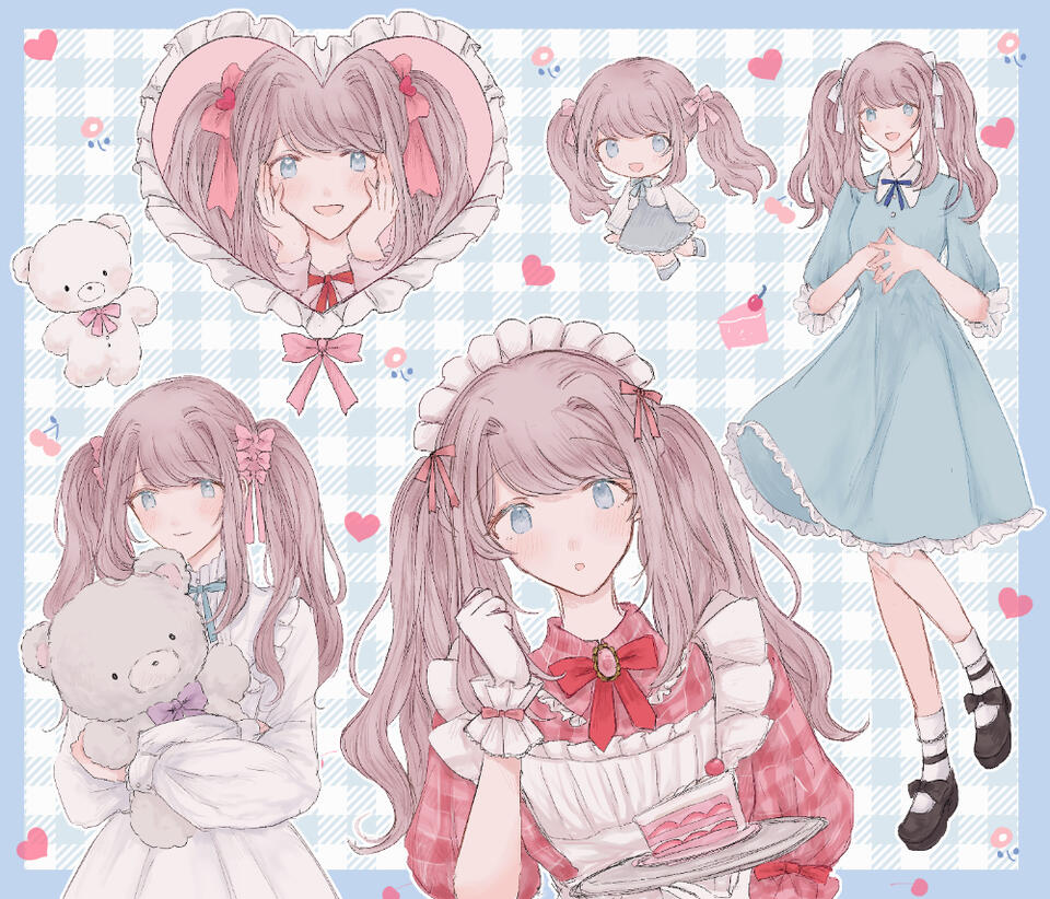 ややくすんだ薄ピンクのふわふわした髪のツインテールにリボン